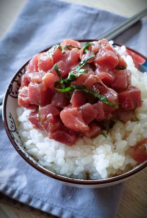 Entre le tartare de viande et le cevice de poisson, voici le tartare de thon rouge. Sur les conseils de mon poissonnier, j’ai pris un filet de viande assez ferme, plutôt maigre, pas trop saignante, ni trop foncée. Il y en avait beaucoup trop, mais c’était très frais et délicieux !